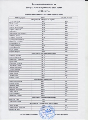 7 лютого 2017р. року відбулася вибори органів студентського самоврядування коледжу. Головою студентської ради обрано Оленюк Наталію, студентку ІІІ курсу спеціальності «Лікувальна справа». Опонентами виступили студент ІІІ курсу спеціальності «Сестринська справа» Журавлюк Денис, який став заступником голови студради та студентка ІІІ курсу спеціальності «Лікувальна справа» Стеренчук Світлана.